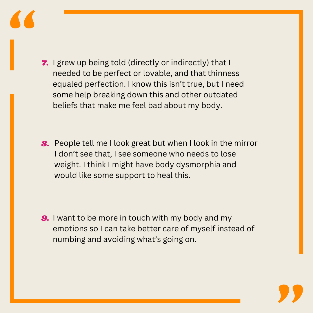 Whether you’re recovering from an eating disorder, struggling with self-worth, or feeling out of alignment with your true self, you are not alone. My clients often describe feeling like they’ve spent years ignoring or trying to change their bodies, and they’re now ready to embrace a new narrative—one where they can show up authentically, unapologetically, and confidently.